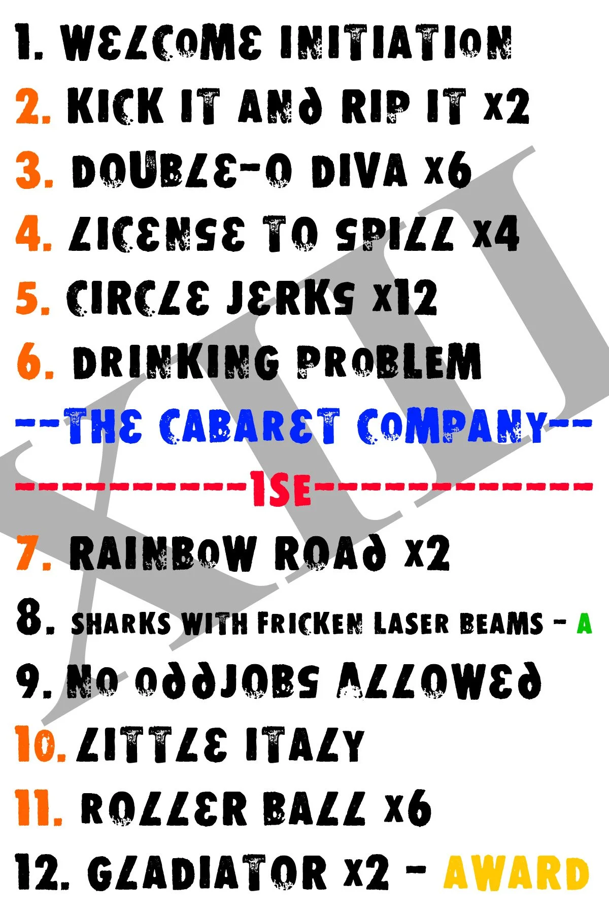 27 people attended including me and there were 21 events. It was a full house and it went on a bit too long. People were getting hammered. It was one for the books for sure.