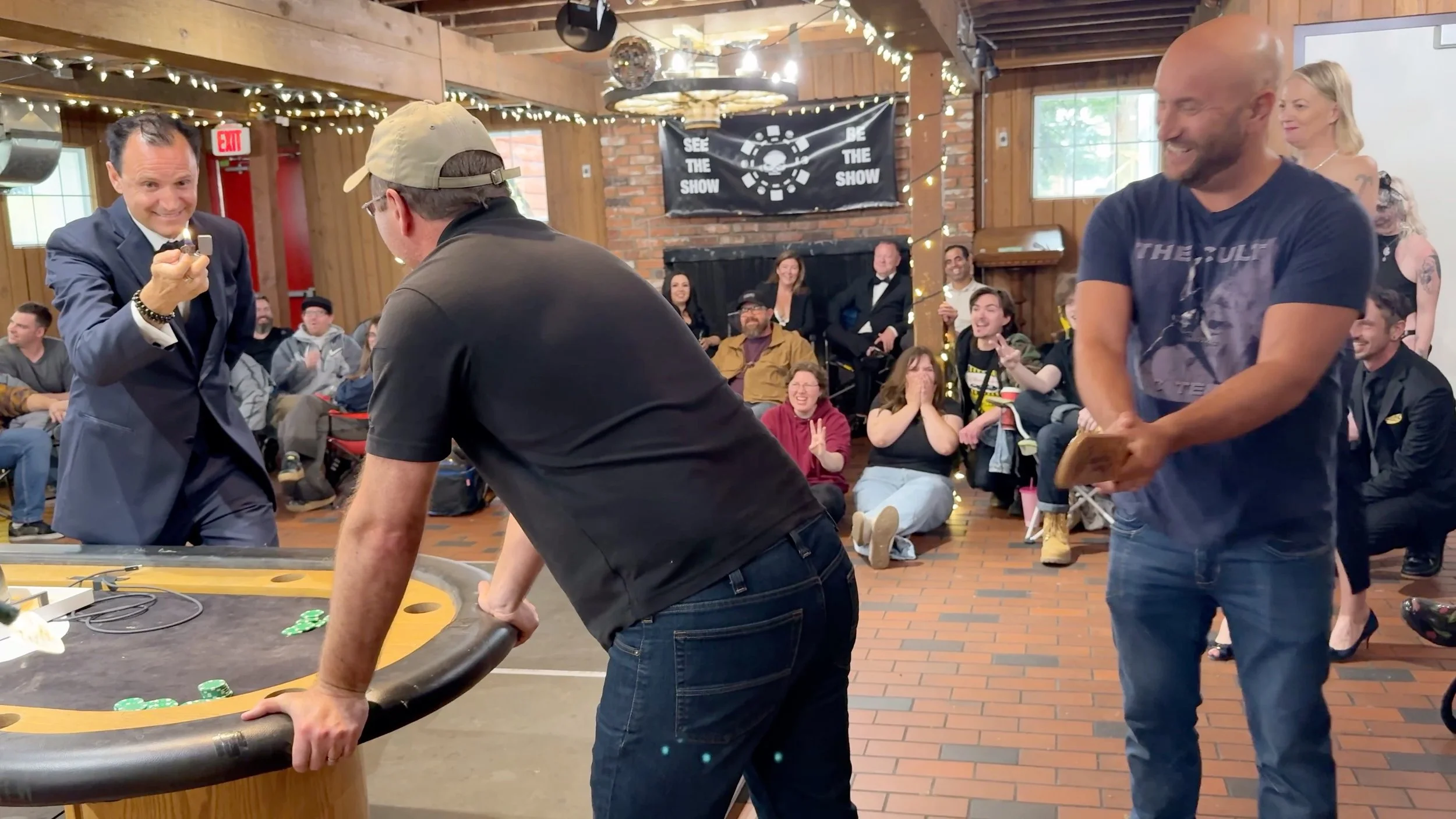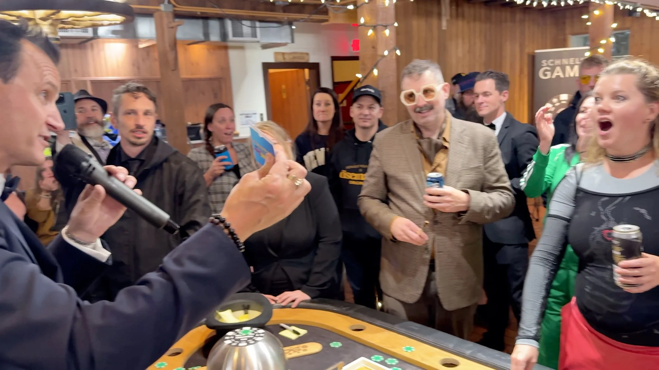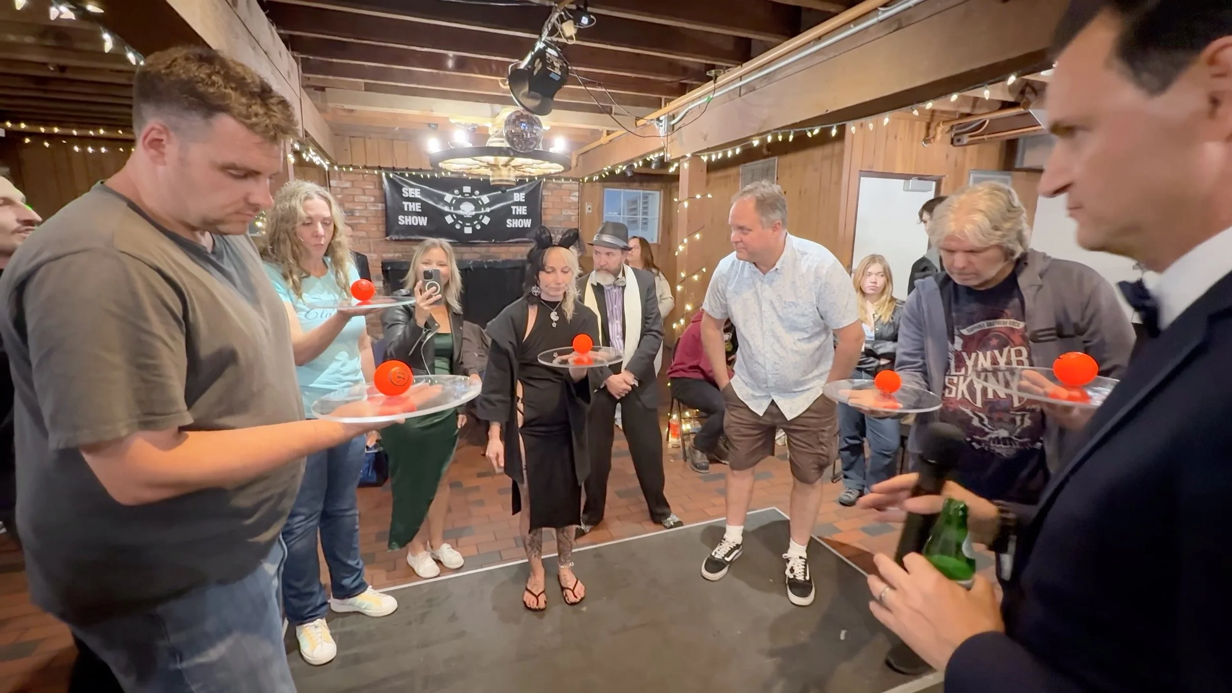 This was one of the most enjoyable events of the night that absolutely no one seemed able to accomplish, the Whitney Houston Challenge. It’s one of those TikTok challenges that sounds easy until you actually try it. You wait for the musical break in the song I Will Always Love You, then try to land one dramatic drum hit right on the final downbeat. In theory, straightforward. In practice, the tempo is weird, the pause is deceptive, and most people end up looking foolish. Mike, Alex, Kurt, Sadie, Shawn, and Andrea all entered the arena thinking maybe they had a hidden gift. They did not. One by one they missed spectacularly. Eighteen total spanks were distributed accordingly. We did it throughout the night drawing names from a hat with zero success. The prize was never given out, and it was an epic prize too. This event was a major crowd pleaser.